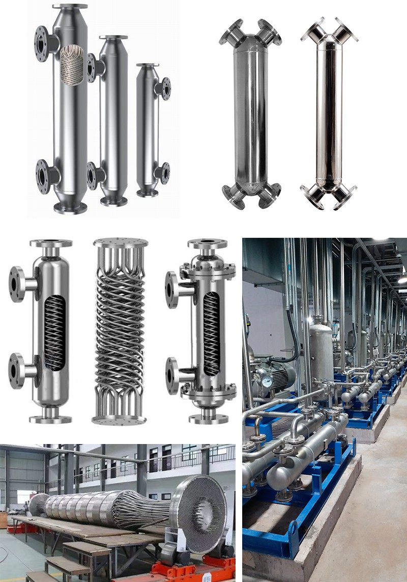 5.耐溫、耐壓,壽命長:由于本換熱器的換熱管束和殼體全部采用不銹鋼材質(zhì),具有統(tǒng)一的膨脹系數(shù),不會因為壓力和溫度不穩(wěn)定而引起換熱器變形;同時,螺旋纏繞彈性管束設(shè)計,可有效消除管道振動和因熱脹冷縮變形產(chǎn)生的應(yīng)力。